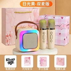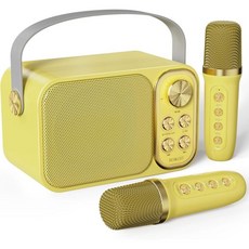 무선 마이크 2개 휴대용 블루투스 스피커 어디서나 노래할 수 있는 어린이용 미니 노래방 기계 소녀들을 위한 파티 생일 가족 모임에 이상적입니다, Yellow