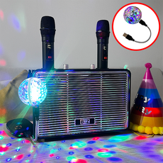 비즈 가정용 휴대용 캠핑용 블루투스 노래방 기계 고출력 듀얼 마이크 스피커 노래방 반주기+LED 사운드 매직 미러볼, K1010 블루투스 노래방+사운드 매직 미러볼