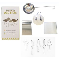 [케이레이션] 한일스텐레스 달고나 만들기 세트 + 식소다100g 증정, 국자+밑판+끌개+누름판+모양틀 5가지, 1세트
