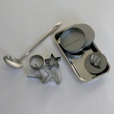 [케이레이션] 한일스텐레스 달고나 뽑기 만들기 세트 (국자+밑판+끌개+누름판+모양5가지), 1개, 국자+밑판+끌개+누름판+모양5가지