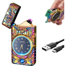 comanyi 캠핑 하이킹 여을 위한 충전식 라이터 USB 전기 플라즈마 아크 캔들 시계 다이얼 방풍 전자 LED 전원 디스플레이(컬러 돌고래), Multicolor
