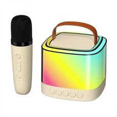 도파밍 휴대용 블루투스 노래방 기계 스피커 무선 마이크 세트 + 매직 미러볼, 크림