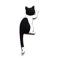 새로운 세련되고 귀여운 창조적 인 다기능 고양이 자석 벽걸이 형 후크 냉장고 자석 냉장고 자석 장식 걸이 브래킷 후크, 검정 흰색