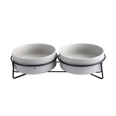 멍해묘해 강아지 고양이 밥그릇 수반 높이조절 원목식탁 밥그릇, 2구 세라믹 유광화이트 2개