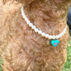 강아지 고양이 진주목걸이 반려견 애완견 목걸이 줄 하트목걸이, 1개, 스카이