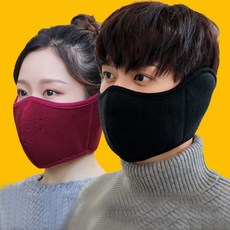 1+1 일체형 귀마개 마스크 귀덮개 겨울 방한 마스크 다회용, 블랙+와인