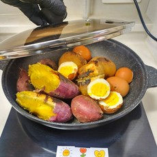 인덕션 IH 겸용 유리 군고구마 고구마 밤 냄비 무수분 주물 투명팬, 1개, 28cm