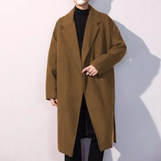 제타22 남성용 고급 울 블렌디드 오버핏 프리미엄 베이직 로브 코트 [1210]