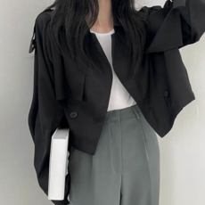 더블 블래스트 재킷 캐주얼 크롭 트렌치 코트