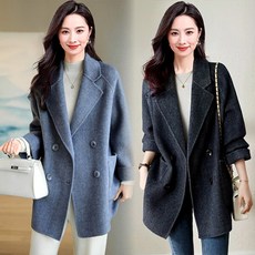 여성 가을겨울 클래식 모직 트렌치 자켓 더블블레스트 디자인 캐주얼 자켓 코트
