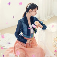 투명한 시스루 한복저고리 여성 블랙 화이트 옷고름 여름 개량한복