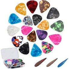 오거나이저 수납함이 포함된 21팩 기타 추천 어쿠스틱 일렉트릭 베이스 우쿨렐레를 위한 3가지 두께의 컬러풀한 셀룰러로이드 플렉트럼, 21 Mixedcolor, 21 Mixedcolor