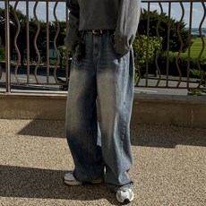 머시따 남성용 사이드 턱 벌룬 와이드 데님 팬츠