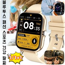 1/1+1 종일 혈압 측정 스마트워치 블루투스 방수 스포츠 건강 팔찌 남녀 공용, 골드, 1개