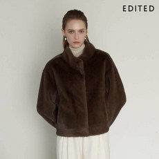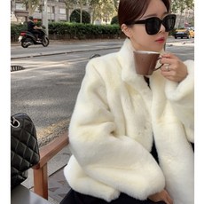 ROYALBELLE 여성 스탠드카라 루즈핏 데일리 숏 자켓 컴포트 소프트 단색 밍크 퍼 코트 D0110624