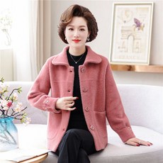 ROYALBELLE 여성 카라넥 밍크 퍼 코트 중년여성 데일리 컴포트 도톰 숏 자켓 캐주얼룩 V110836