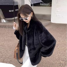 WHR 여성 인조모피 자켓 숏 퍼코트 두툼 점퍼 밍크 페이크퍼 보들보들 루즈핏 아우터 겨울