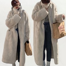 RCLET 여성 밍크털 롱코트 뽀글이 후리스 두꺼운 겨울 아우터 자켓 빅사이즈 퍼 털자켓