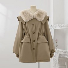 이 코트는 일반적으로 겨울철에 많이 착용되며, 따뜻한 겉감과 부드러운 페이크퍼 안감으로 제작됩니다.