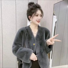 Yanrz 여자 퍼 칼라 코트 숏 인조밍크 코트 23M809