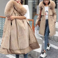 POMTOR 여성 겨울 롱 후드 퍼코트 따뜻한 양털 안감 외투 도톰 방한 캐주얼재킷