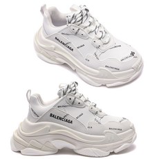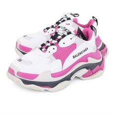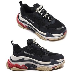 발렌시아가 트리플 S 스니커즈는 발렌시아가(Balenciaga)라는 유명 패션 브랜드에서 출시한 대표적인 스니커즈입니다. 트리플 S는 그 이름처럼 신발의 소재를 여러 겹으로 쌓아올린 디자인이 특징이며, 그로 인해 독특하고 높은 아웃솔을 가지고 있습니다. 이 스니커즈는 2017년에 발매되어 매우 큰 인기를 끌었으며, 현재까지도 패션 업계에서 많은 사랑을 받고 있습니다.
