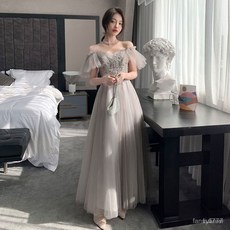 FANSYLI 그레이 들러리 여성 롱원피스 디너드레스 고급 자매단 이브닝 드레스 원피스 L12S11, C