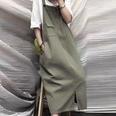 데일로엔 여성 빈티지 멜빵 반집업 롱 원피스