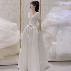 화이트 새틴 셀프 웨딩 드레스 피로연 연주회 돌잔치 결혼식2부 원피스 a3