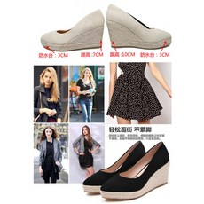 스웨이드 벨벳 웨지힐구두 승무원 스튜어디스 구두 호텔리어 근무화 통굽힐