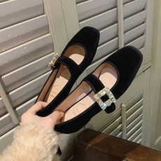 메리제인 플랫 슈즈 벨벳 단화 신민아 갯마을 차차차 스퀘어 큐빅 사뿐 가을 여성 코디 미드힐