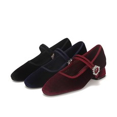 besteffie 메리제인슈즈 여성용 봄 벨벳메리제인 스트랩 펌프스 미들힐 메리제인 슈즈 미들힐 E58