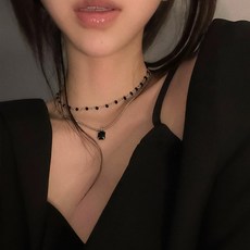 미끄마끄 여자 블랙 큐빅 2단 레이어드 목걸이 심플하고 가벼운 써지컬 드롭 럭셔리 체인 초커 목걸이