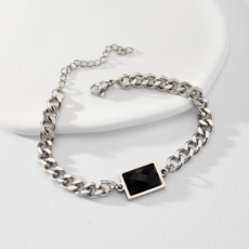 블랙 사각 스퀘어 실버 굵은체인 목걸이 + 팔찌 세트 단품