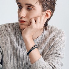 에르모사제이 맨즈 MW059 써지컬 스틸 뫼비우스 남자 가죽 팔찌