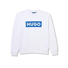 HUGO 남성용 빅 로고 프렌치 테리 스웨트셔츠 리치 화이트