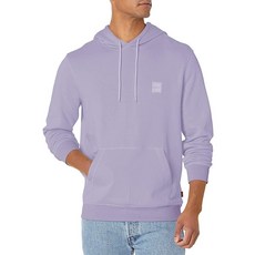 BOSS 남성용 패치 로고 프렌치 테리 풀오버 후드 면 스웨트셔츠 샴브레이 블루