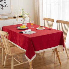 마켓에이 모던 원컬러 레이스 포인트 테이블커버 TYPE2, 레드, 130 x 180 cm