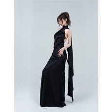 로즈 블랙 홀터넥 칸 레드카펫 등판 리본 드롭 롱 머메이드 이브닝드레스