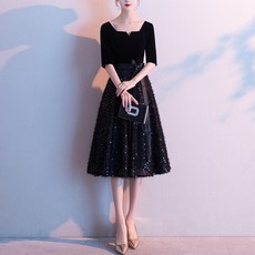 파티시 미디 드레스 D.0013 블랙 빅사이즈 뉴욕 원피스 레드카펫 연말 송년회
