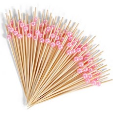 4.7인치 칵테일 피킹 애피타이저용 이쑤시개 - 50PCS 핑크 펄 꼬치 음료 음식 과일 파티 용품 장식 액세서리용 대나무, 50개