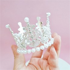 빅쓰리몰 진주 큐빅 티아라 왕관 토퍼 브라이덜샤워, 2개, 실버