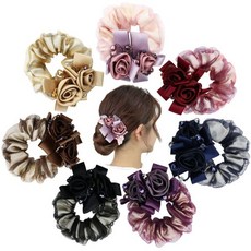 인소니 7팩 스파클리 크리스탈 펄 로즈 플라워 레이스 헤어 스크런치 타이 고무 밴드 포니테일 홀더 플로럴 헤드 여성 두꺼운 머리를 위한 멋진 장식 액세서리