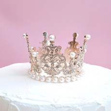 빅쓰리몰 진주 큐빅 티아라 왕관 토퍼 브라이덜샤워, 2개, 로즈골드
