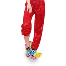 스팽글 반짝이 의상 조끼 바지 모자 파티 행사 단체, C01.반짝이바지(빨강)