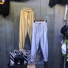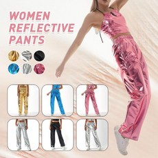 JoYouth 광택 반짝이 댄스 바지 무대 행사 방송 공연 팬츠 단체복 스트리트 허리 신축성 홀로그램 일자 조커 하렘