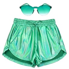 Women's Metallic Holographic Shorts Pink Glittery Pants 80s Disco Alien Outfit Shiny Rave Party with, Medium