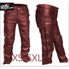 바이커 바지 남성용 록 인조 스팀펑크 모토사이클 메탈릭 가죽 펑크 오토바이, XL (77.5kg 이하), 레드 포켓