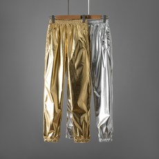 방송댄스 메탈릭 허리밴드 실버와 골드 조거팬츠