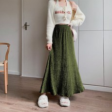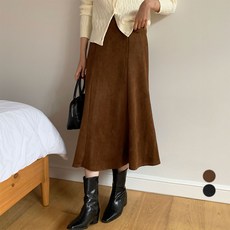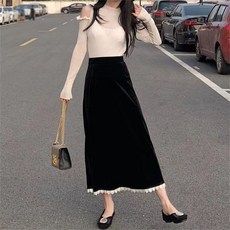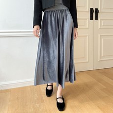 besteffie 벨벳 스커트 여성용 허리 밴딩 루즈핏 롱스커트 간절기 힙 스커트 자체제작 E55